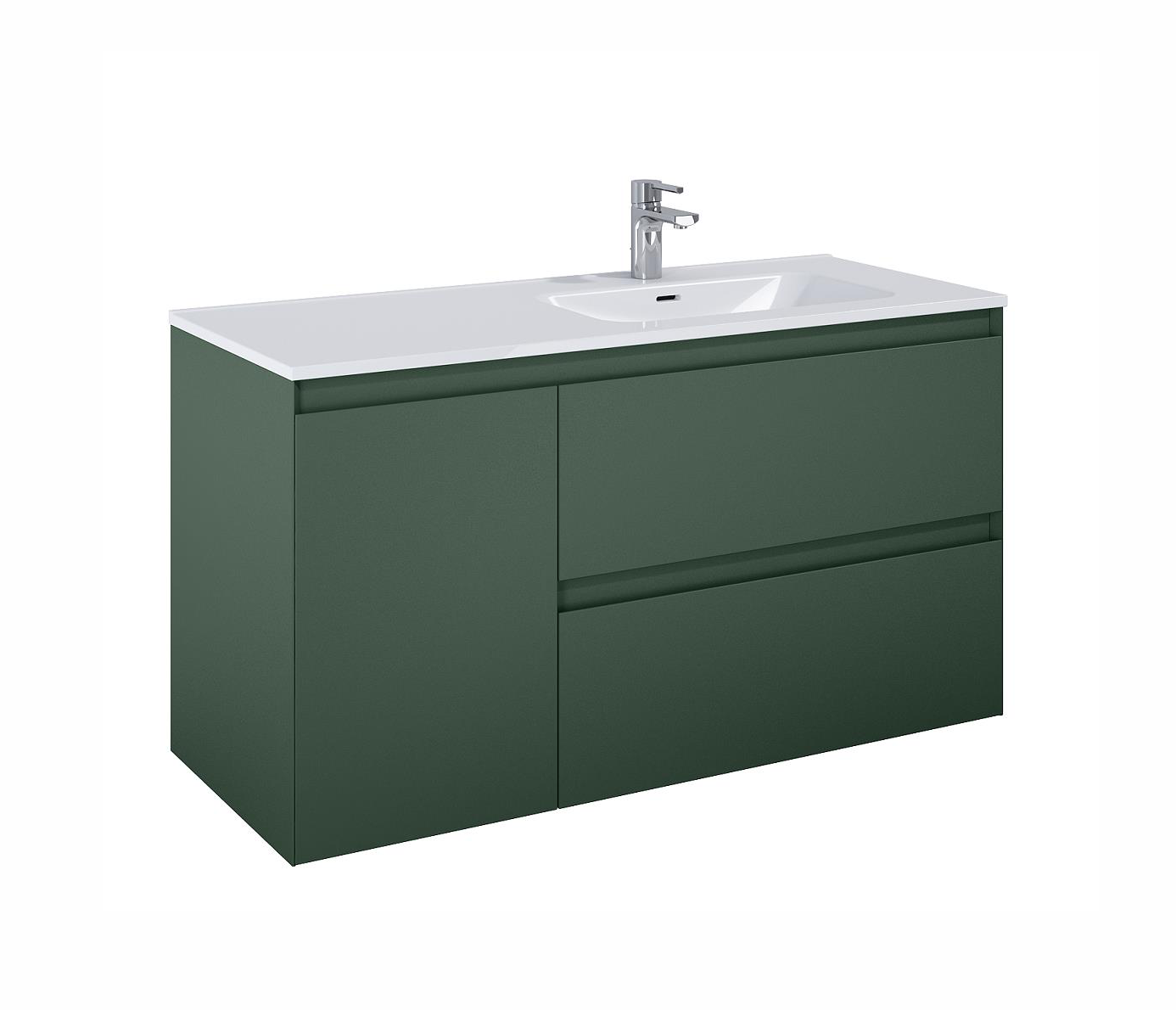 ALMA Badmøbel inkl. Vasketøjskurv, 120×46, Højre eller Venstre, Skovgrøn