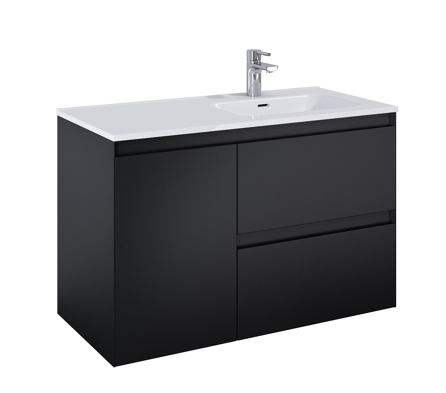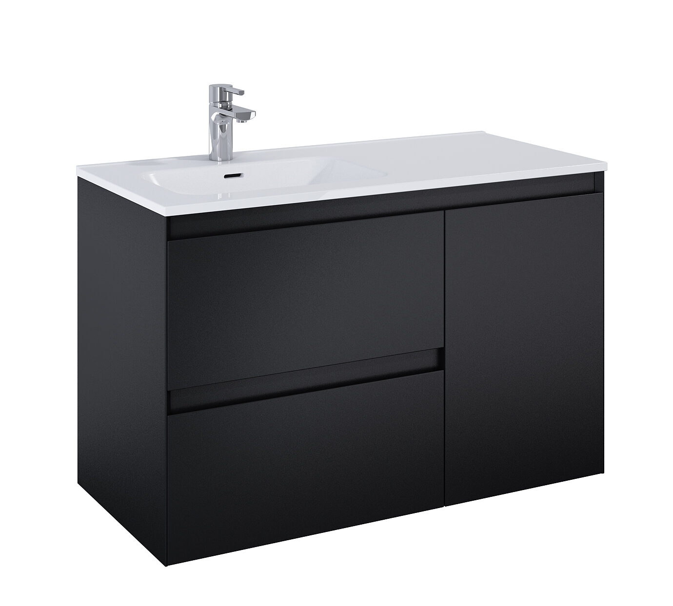 ALMA Badmøbel inkl. Vasketøjskurv, 100×46, Højre eller Venstre, Sort