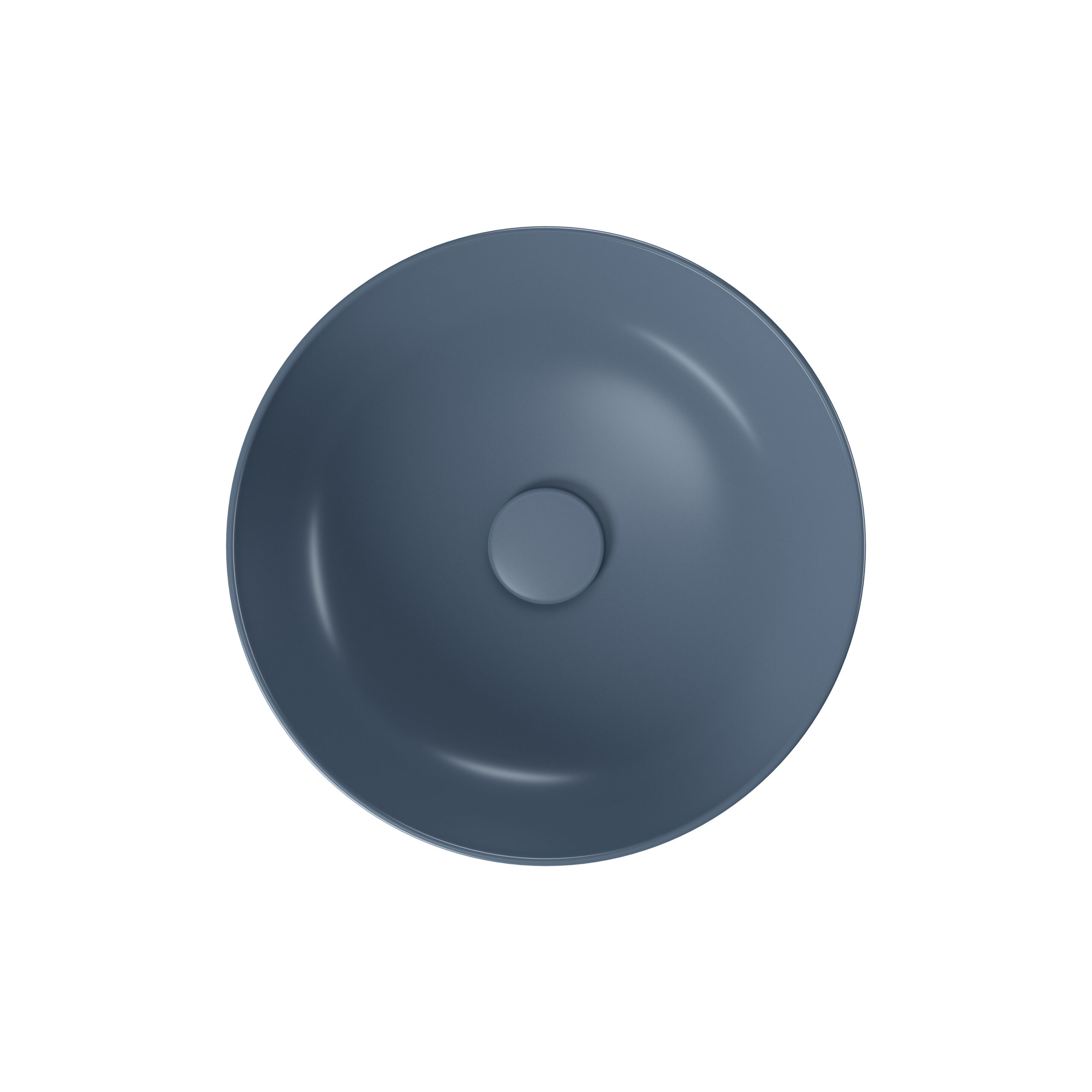 Den unikke blåfarvede glasur på FARVA bordvasken understreger rummets moderne stil, og den mørke nuance tilfører interiøret en særlig atmosfære, som udtrykker stil og en original tilgang til badeværelsesdesign.