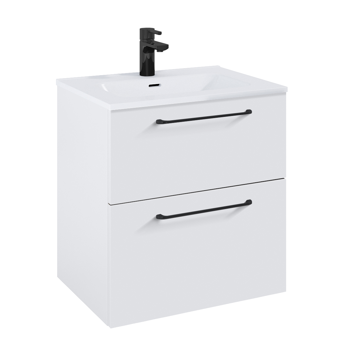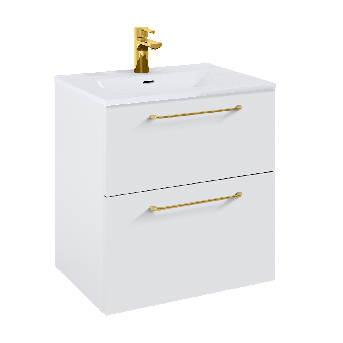 WILMA ORGANIC Badmøbel 60×45, Hvid Mat, 2 Skuffer, Guld greb