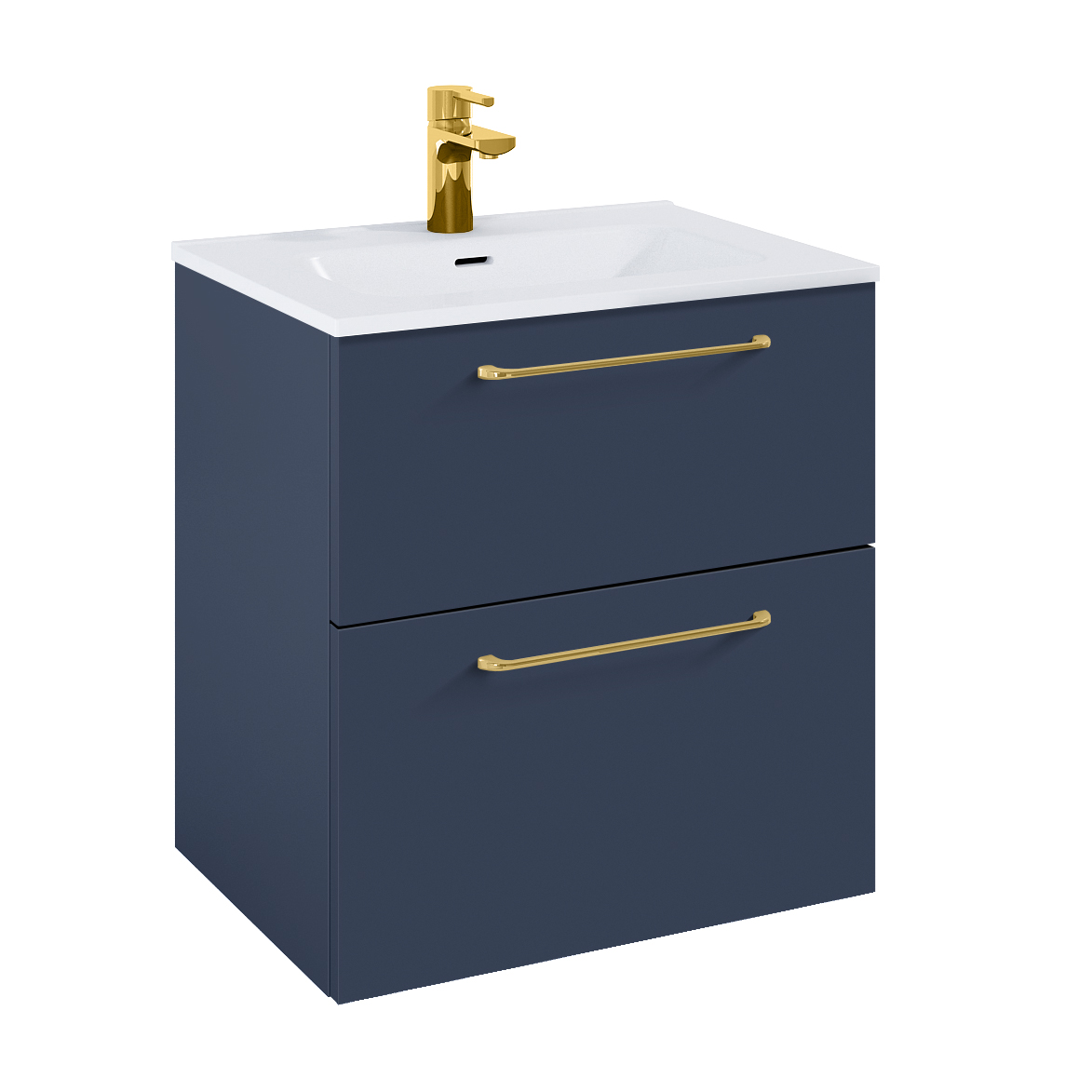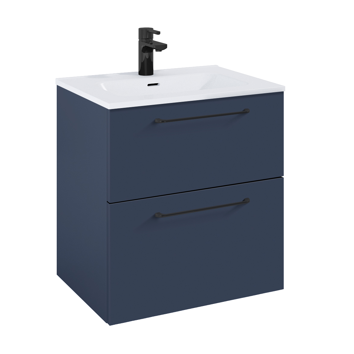 WILMA ORGANIC Badmøbel 60×45, Marineblå Mat, 2 Skuffer, Sorte greb