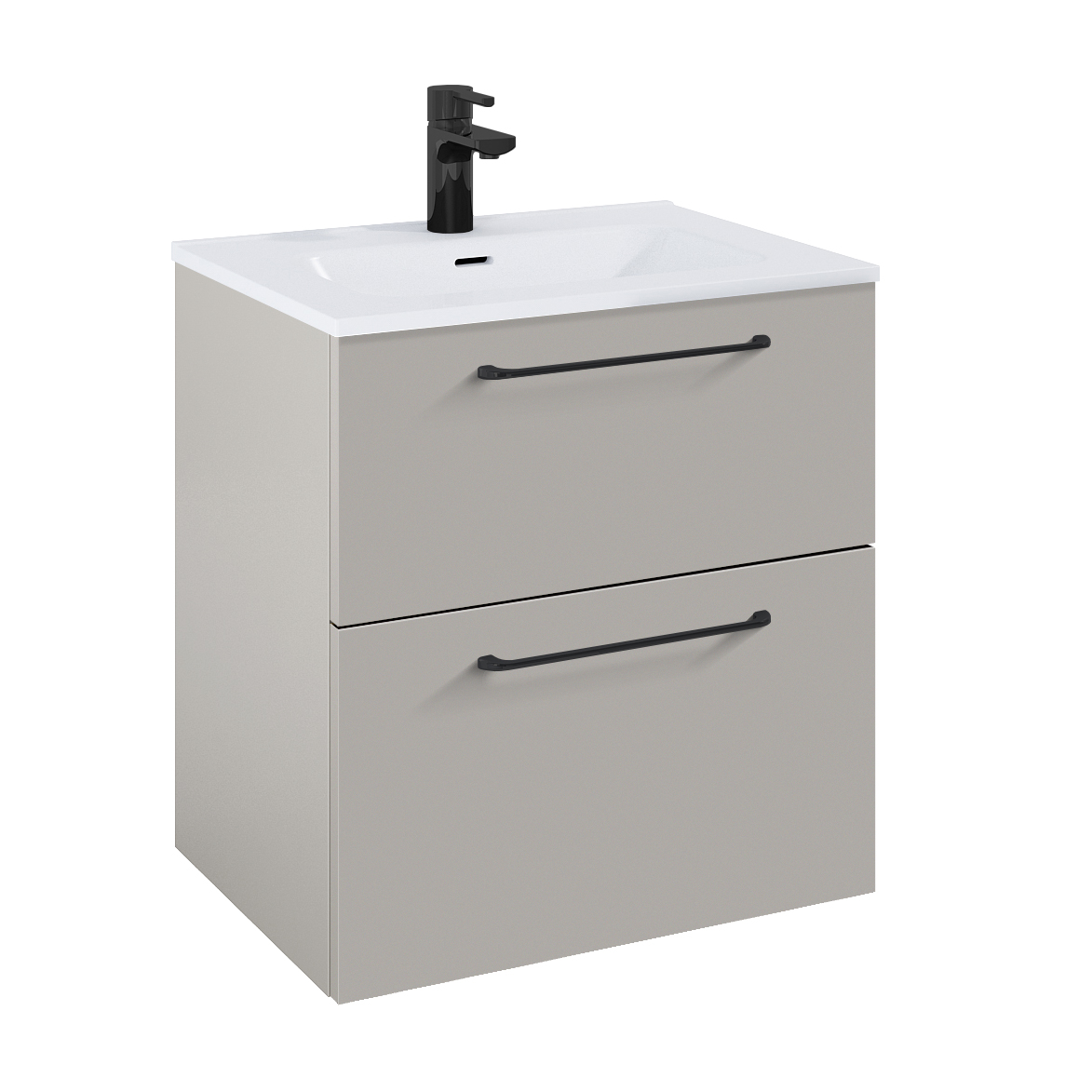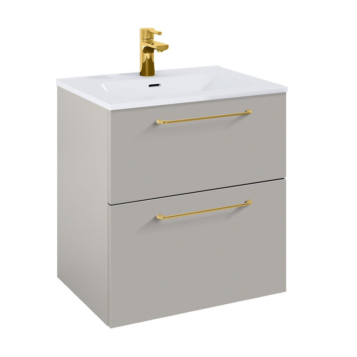 WILMA ORGANIC Badmøbel 60×45, Røgfarve Mat, 2 Skuffer, Guld greb