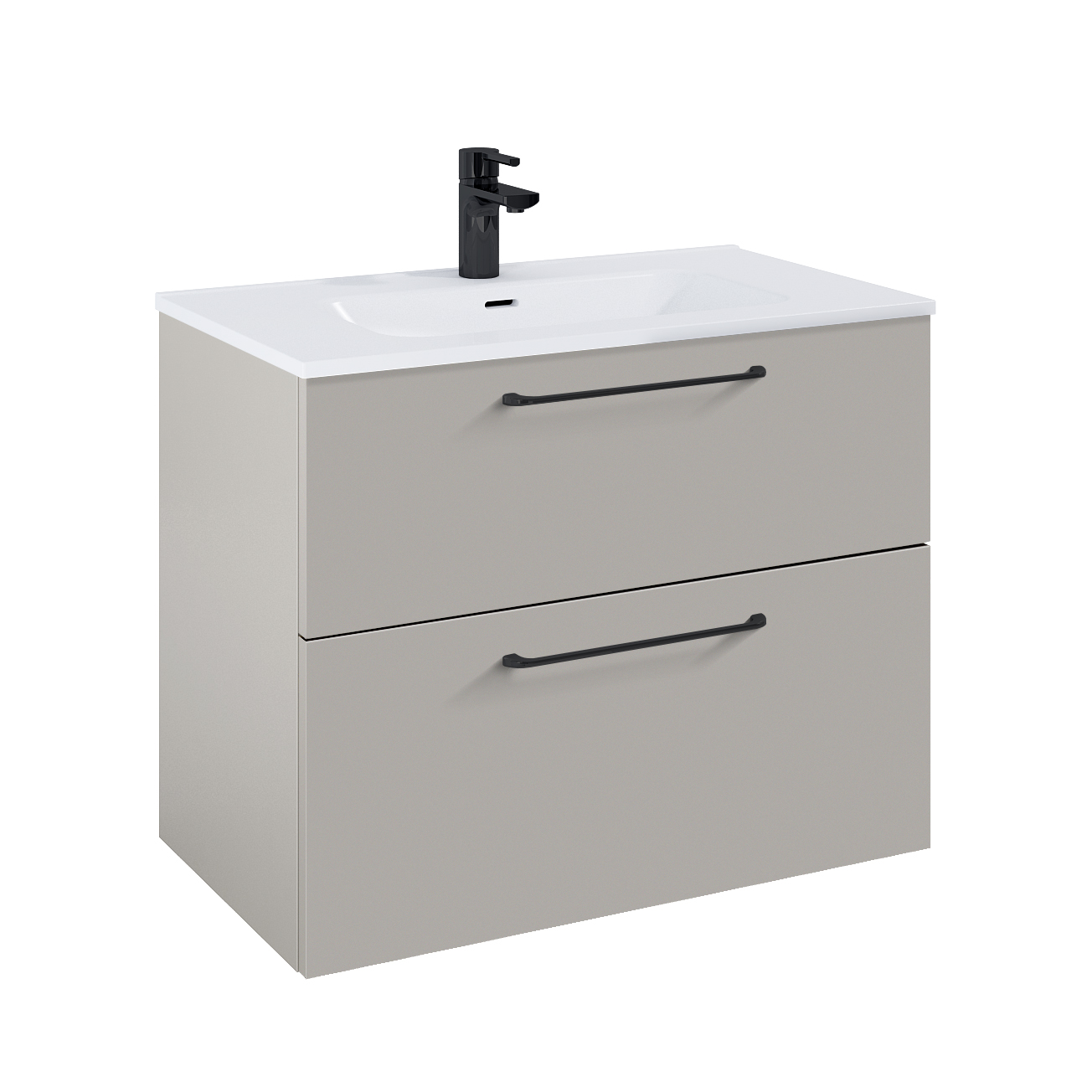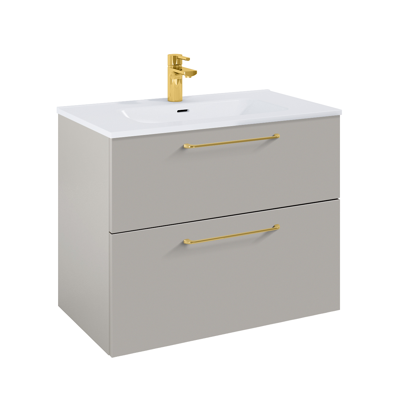 WILMA ORGANIC Badmøbel 80×45, Røgfarve Mat, 2 Skuffer, Guld greb